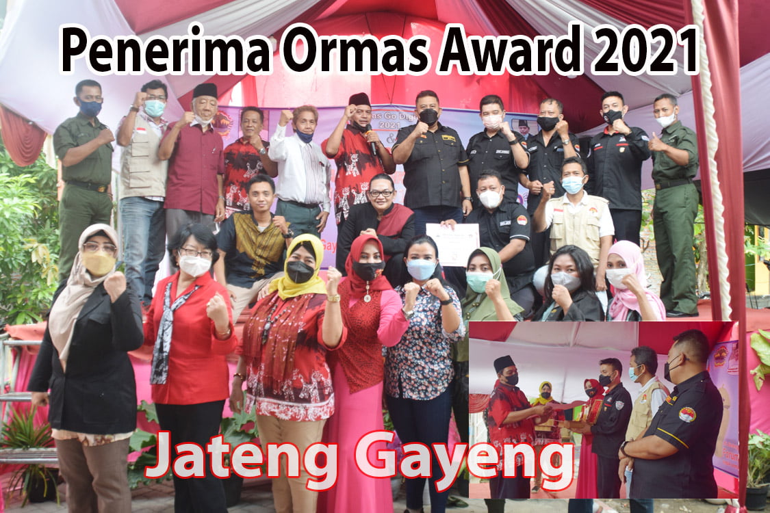 Piagam dan piala serta uang pembinaan satu persatu diserahkan langsung oleh ketua umum Jateng Gayeng Ahmad Robani Albar, dari pertama yang menerima penghargaan tersebut diawali dari ormas Ratu Kecantikan dibawah kepemimpinan R.Ay Siti Juanah, dilanjutkan keurutan berikutnya ada Ormas Geram dibawah Pimpinan Havid Sungkar dan berikutnya ormas GJL dibawah kepemimpinan Riyanta serta Ormas Forkommas dibawah pimpinan Adi Wisnu Nugraha. Disela sela pemberian penghargaan Ormas Award 2021 tersebut disaksikan sejumlah pejabat penting di Lingkungan Pemerintah Provinsi Jawa Tengah dan Pemkot Semarang.