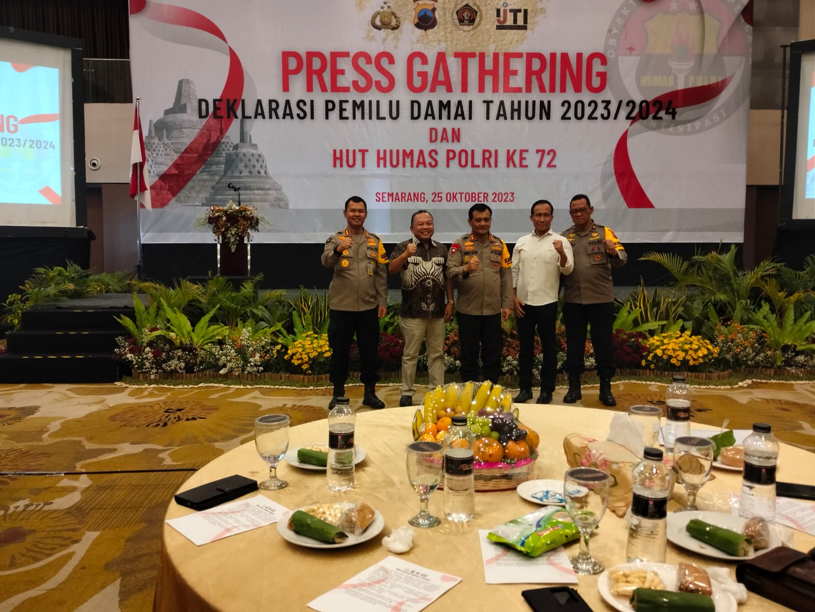 Suaracaraka.com, SEMARANG, JAWA TENGAH – Polda Jateng mengelar deklarasi pemilu damai 2023/2024 dengan para awak media, untuk menjaga pemilu damai dan kondusif Rabu (25/10/2023)